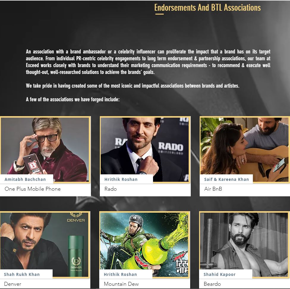 What differentiates Exceed Entertainment from others is its holistic approach to brand building. As both a brand ambassador agency and a digital influencer marketing agency, it integrates celebrity endorsements with influencer collaborations to create 360-degree marketing solutions. The company’s proven track record of co-creating successful celebrity-driven brands such as HRX and House of Pataudi highlights its forward-thinking vision. For businesses seeking impactful celebrity endorsement in India or influencer campaigns led by top digital marketing influencers, Exceed offers unmatched expertise and execution. With a legacy of excellence and a portfolio featuring India’s most celebrated stars, the agency continues to set benchmarks in talent management, brand collaborations, and digital influence.